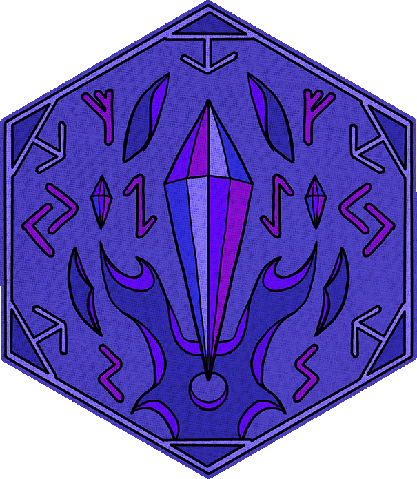 House Silroth derives their name from a powerful heirloom staff. This staff, topped with a large refracting crystal, is wielded by the head of the family, enhancing their magical powers. Their indigo crest shows this staff on a background of runes.